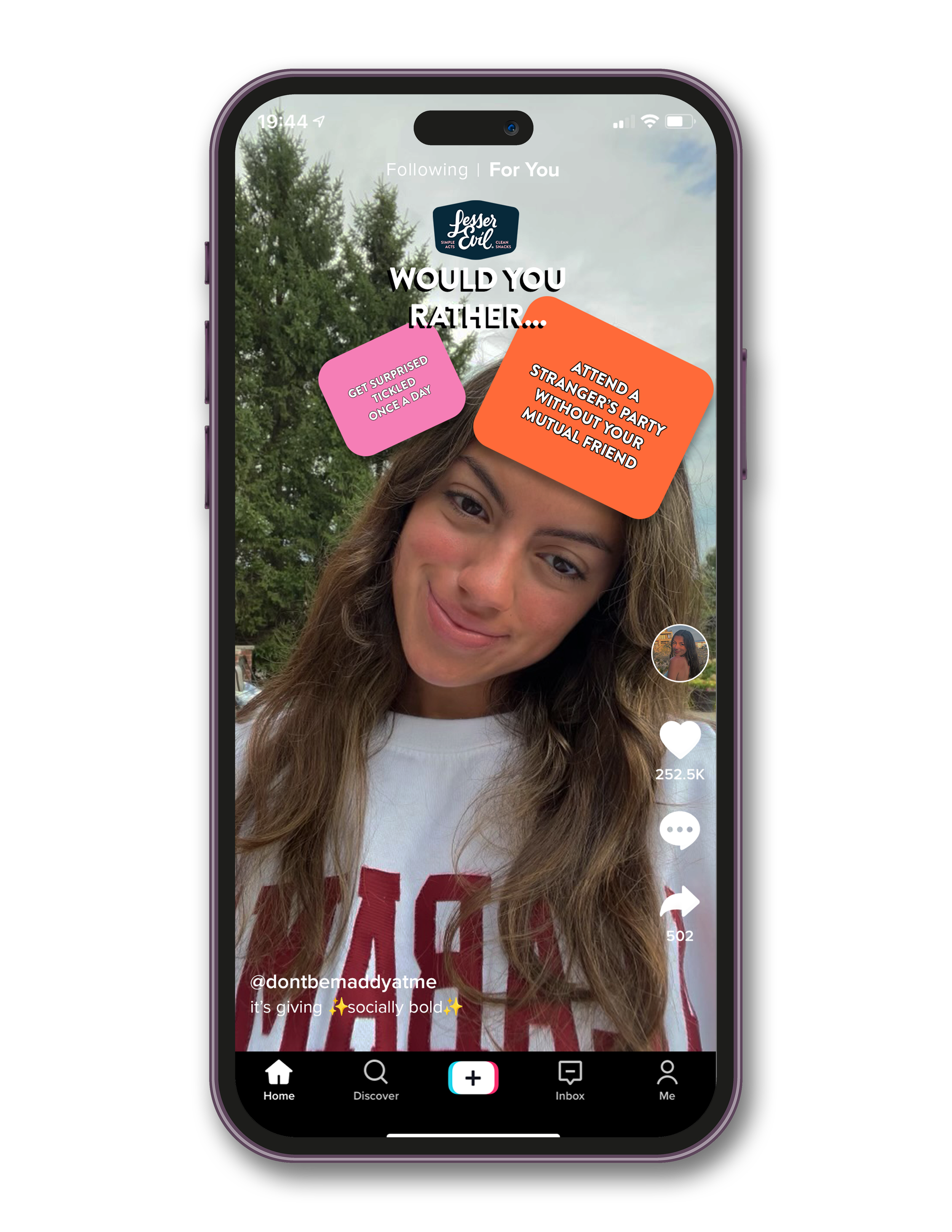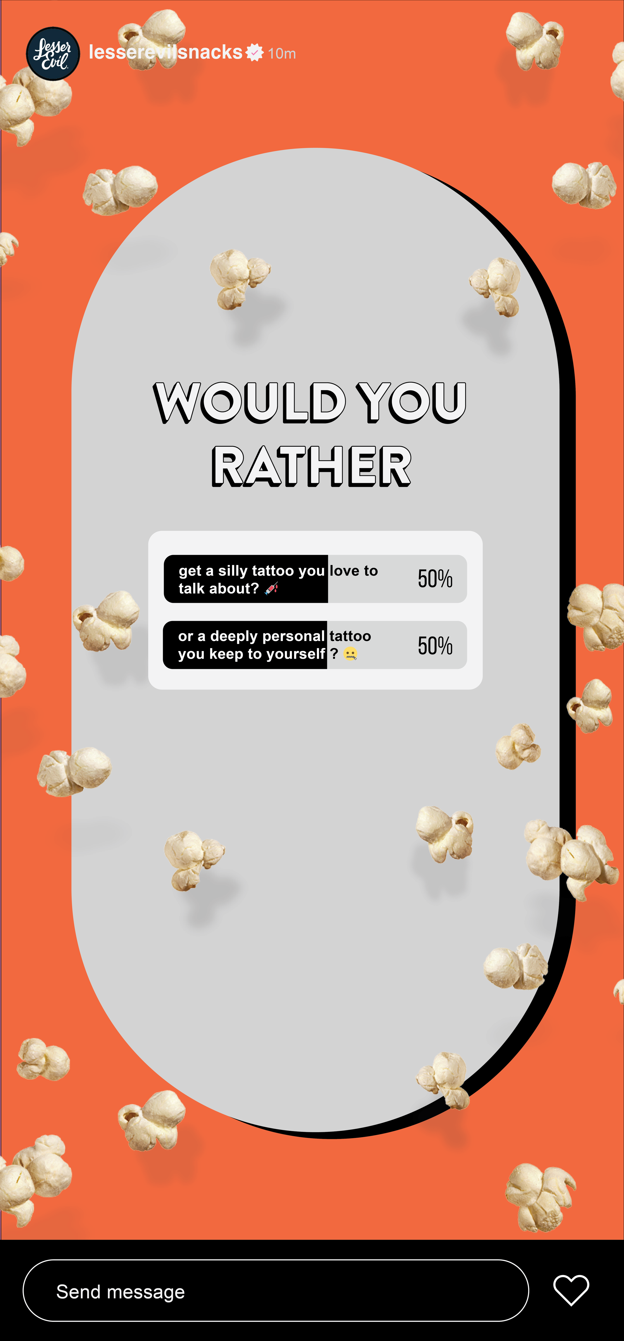 We’ll partner with the YouTube channel Cut, who specialize in hot take/dating game shows, to create a new series wherein contestants are rotated in to play the LesserEvil card game while eating LesserEvil popcorn.